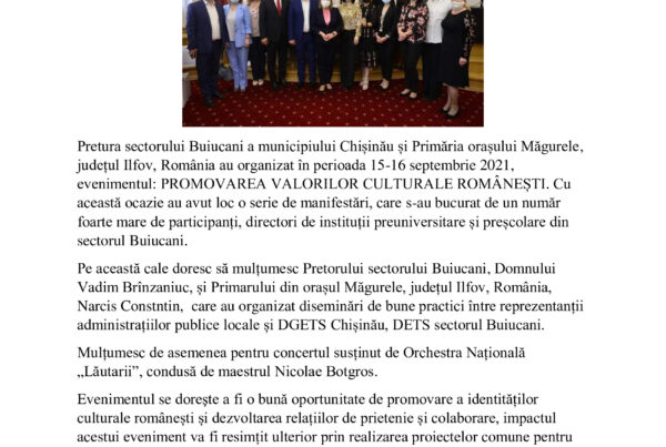 Noutăți 10 septembrie 2021 Seminarul internațional: Probleme și soluții în gestionarea procesului de alimentație în instituțiile de învățământ general din municipiul Chișinău și Japonia Activitatea organizată astăzi 09 septembrie 2021, în format online, a întrunit cca 90 de directori… Magdalena